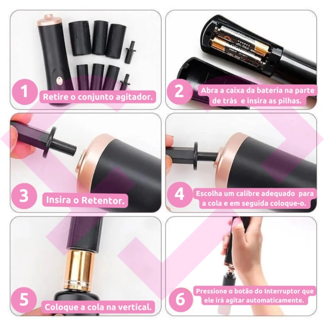 O agitador é ideal para as colas de extensão de cílios, pigmentos e outros líquidos que precisam ser agitados para se tornarem mais homogêneos. Melhora a eficácia e o aproveitamento do produto, reduz os riscos de entupir o bico da cola (agitando de forma manual o líquido é chacoalhado em vertical).